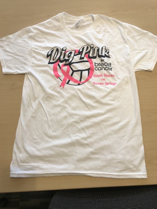 South Haven Volleyball is now selling Dig Pink merchandise in preparation for the upcoming Dig Pink volleyball game on Tuesday, September 28 at 1:00 pm. All profits from the sales go to breast cancer research and awareness.